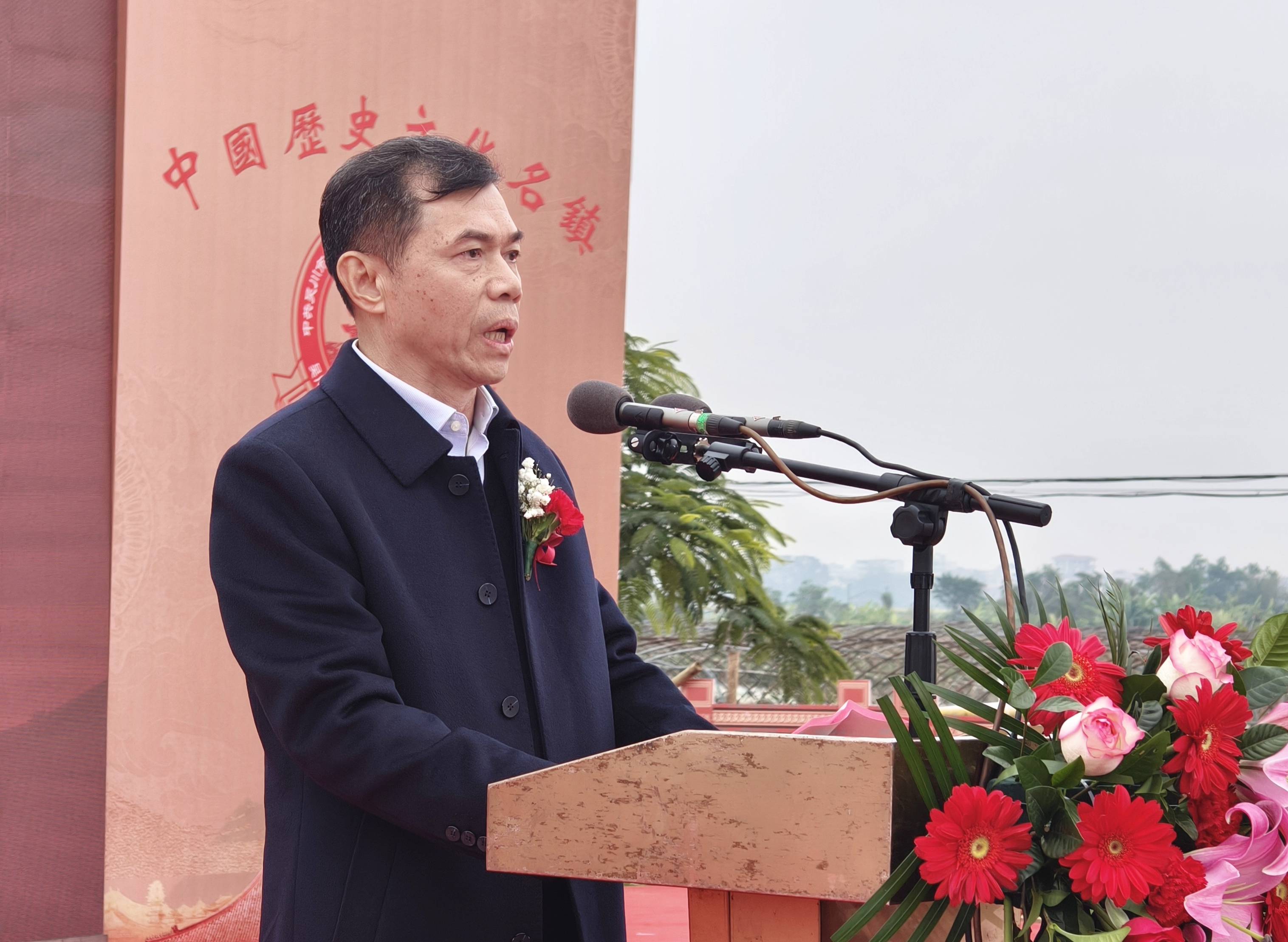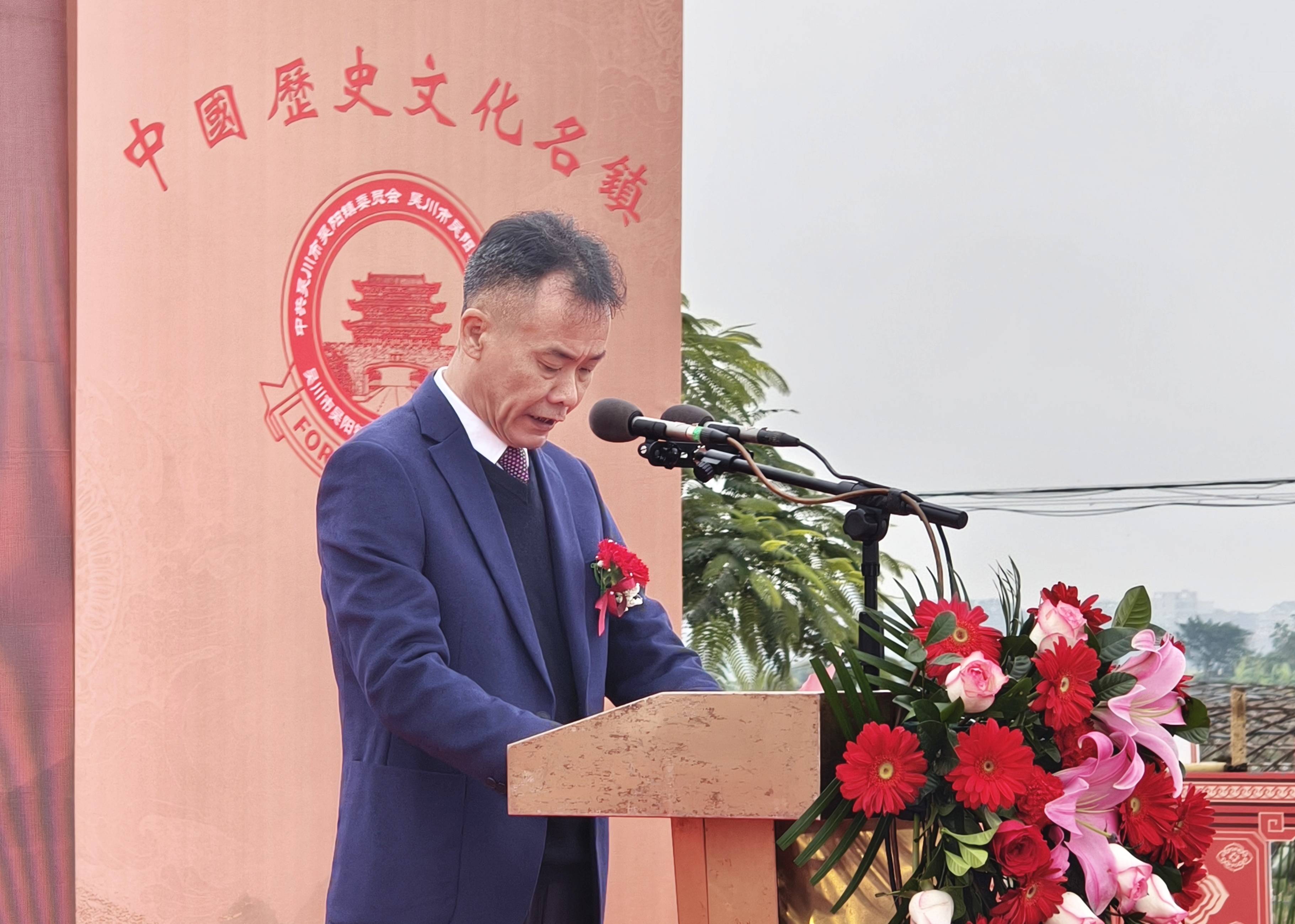 广东永晟建设集团有限公司董事长、吴川市吴阳镇历史文化名镇发展促进会常务副会长文华盛先生致辞。